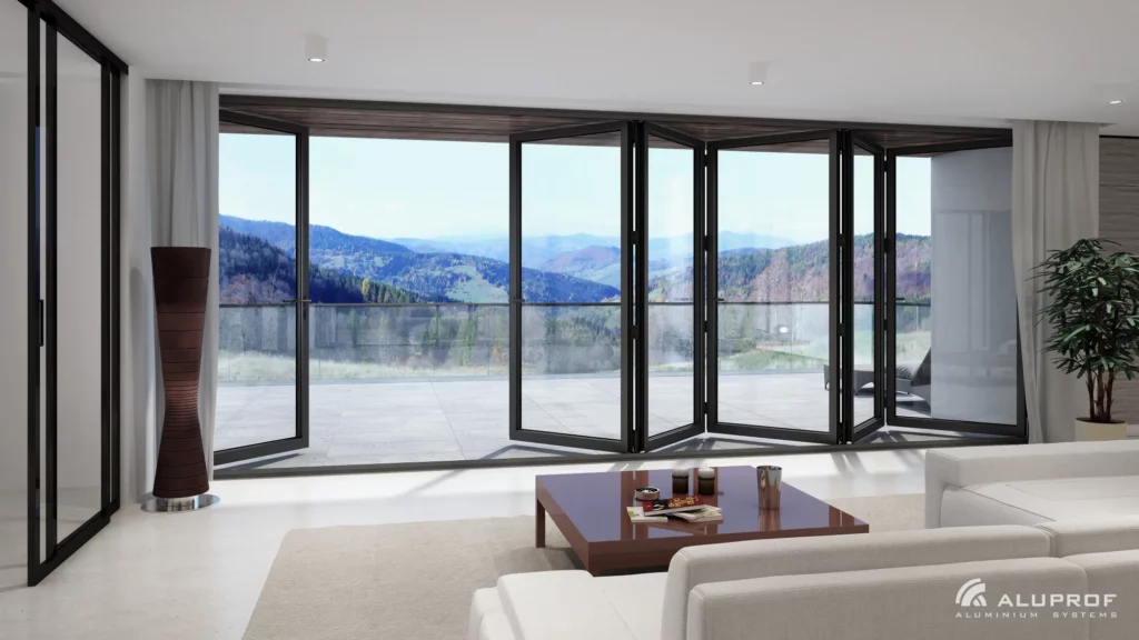 Die großen Verglasungen im Haus sorgen für eine hervorragende Raumbeleuchtung. Komfort und außergewöhnliches Design in einer Architektur, die zur Umgebung hin offen ist, erfordern besondere Lösungen. Schiebetürsysteme aus Aluminium bieten die gestalterische Freiheit, hohe und leichte Gebäude zu schaffen. Zobacz wszystkie możliwości i wybierz dla siebie najlepsze.