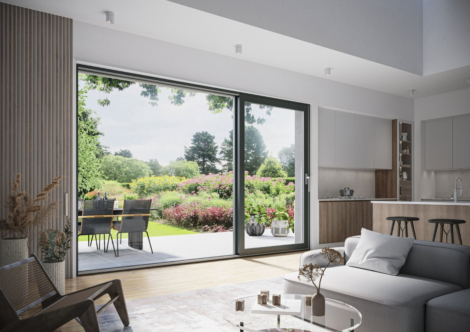 Große Südfenster – wie Schiebetüren mit Systemen wie Smart Slide oder HST – sind hier ideal. Sie lassen besonders viel Licht herein und machen den Raum hell, geräumig und angenehm nutzbar. Im Winter, wenn die Tage kurz und oft trüb sind, wirkt sich das zusätzliche Tageslicht besonders positiv auf das Wohlbefinden aus.